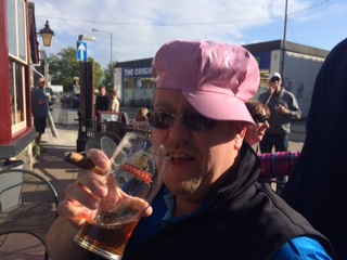 This brought the arrival of Dave and Simbers (racing down in the Lotus). The bacon and sausage brekkie was in order but this time without the gin option. The Chaps the headed of for the Fairbourne open. The annual Chap golf tournament. This year the usual suspects did not win (Dave and Rog) abd it was left to Brain to claim the spoils. A good afternoon was had. We caught the train back to Barmouth and sat outside the Talydon in glorious sunshine supping a few beers. The cap of rebuke also made a guest appearance with Rog being the primary wearer!. Ales consumed we finally mad it for a ruby. This has been mooted on all previous DTW's but had never materialised. The chaps lobbed in to Saffron for a rather tasty treat before obtaining a taxi back to talybont. Final call for the weekend was a beer or 2 in 1957 before retiring for the night.