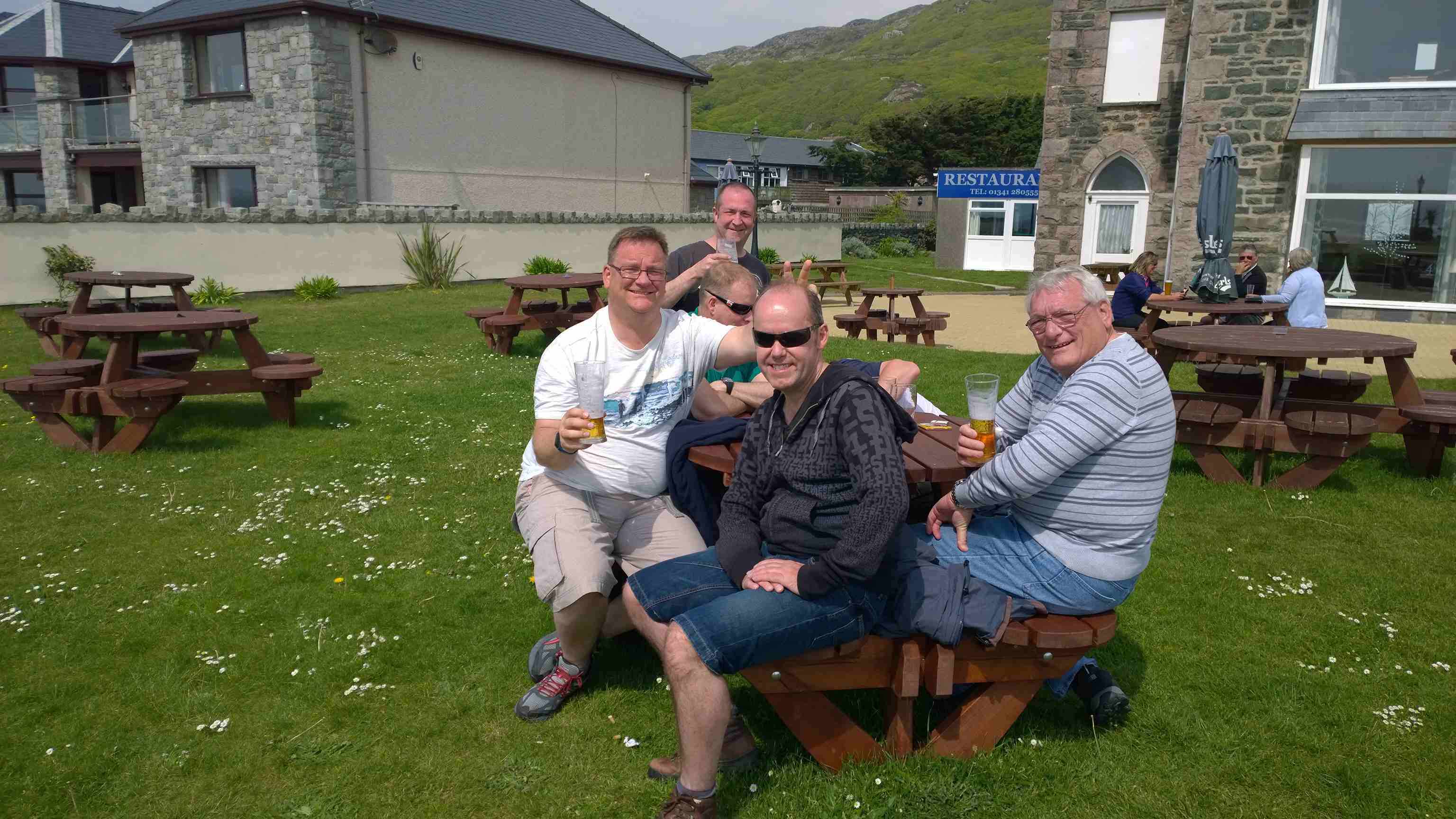 We arrived at the first pub the Min-Y-Mor hotel. As it was sunny we sat outside with Dumber and Dumber sank a few beers and had a tremendous game of 'Hide the iPod' much to Phil's disgust.