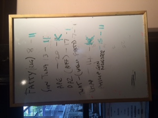 Moving on we headed to the Talydon. here we had the usual game of killer, with Phil trying to kill Chap with couple of badly misplaced throws whilst consuming plenty more ale. We decide to head back to Talybont on the 6.00pm train. Needless to say there were casualties!!.