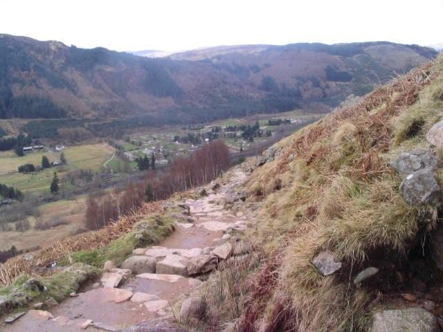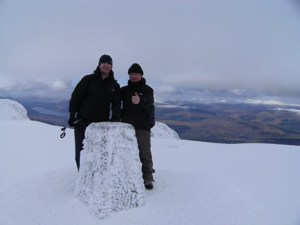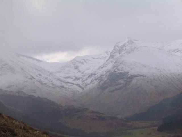 Saturday dawned somewhat depressingly with snow in the air-and a look up to the mountains seemed to confirm our worst fears that the expedition up the Ben was going to be a bust. However we all set off from the Claggan Industrial Estate (hardly Gravelly Hill) with our (very unflattering) thermal base layers on-let me say they do nothing for you on a vanity level-and took the surprisingly long walk to the start of the Ben Nevis trail . The views around us were spectacular but fairly intimidating as the signs warned of the snow line being down to 600m freezing level of 650 m and a wind chill of minus 18C. We trudged up skywards and as predicted hit the snow level within 2 hours-there were suspiciously few people around but we did meet one local on his way down who told us that things were rather hostile from a weather point of view higher up. Dave eventually decided as he was slipping and sliding his way along that although he could probably continue on his way up -the route back down was going to be a suicide mission for him and sidled off down to a lower level for a trek along the river.