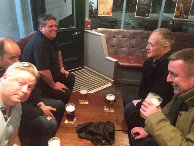 A more sedate affair compared to last years extravaganza for Chap's 50th. A small but merry band of Chaps assembled at a new venue, the Woodman on Curzon Street suggested by Simbers. Nice place this, a proper pub with decent ale to boot. Phil turned up sporting his new 3/4 length jacket pretending he was one of the gentry. Steve H also made a brief appearance during proceedings. Plenty of beer was quothed before Simber's set us of on one of his more gentle route marches to the Eagle and Ball.