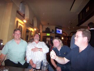 The Chaps, Dave, Rog, Tone, Simbers & Chap meet up in the Corner House to attempt to watch the England match. However, the big screen had disappeared so we headed off to the usual haunt the Old Royal. The football was rather 'Svenesque' to say the least as England struggled to a 0-0 draw, but it did give the chaps plenty of time to discuss other matters as well as consume plenty of beers. The footy now just provides another excuse to go out on the lash with the lads rather than any entertainment value - wonder how short McNumpties reign will be??. We were joined later by Steve and Phil in the OR for a few beers before heading off to a new watering hole.