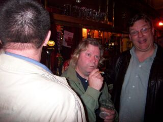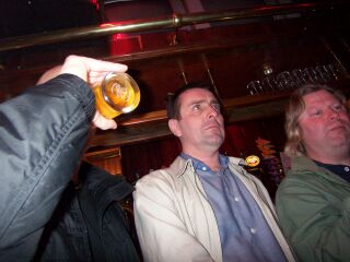 We took the short walk down to the Actress and Bishop, what is now a regular chap haunt to see what was in store for us there. More ale was consumed as well as few top notch cigars (this one about to blow Phil's head off). However, the night was strangely subdued (maybe due to the Maclaren brand of football) and some of the chaps headed off home early. Tone first followed by Simbers and Rog, leaving Dave, Phil Steve and Chap to carry on. Steve did a bit of 'hair styling' and decided to stay behind for a head-bang after persuading the DJ to play some suitable music. Dave, Phil and Chap bailed around 11.00pm!!! and didn't make it for a ruby - a strange event indeed - maybe old age is catching up!!