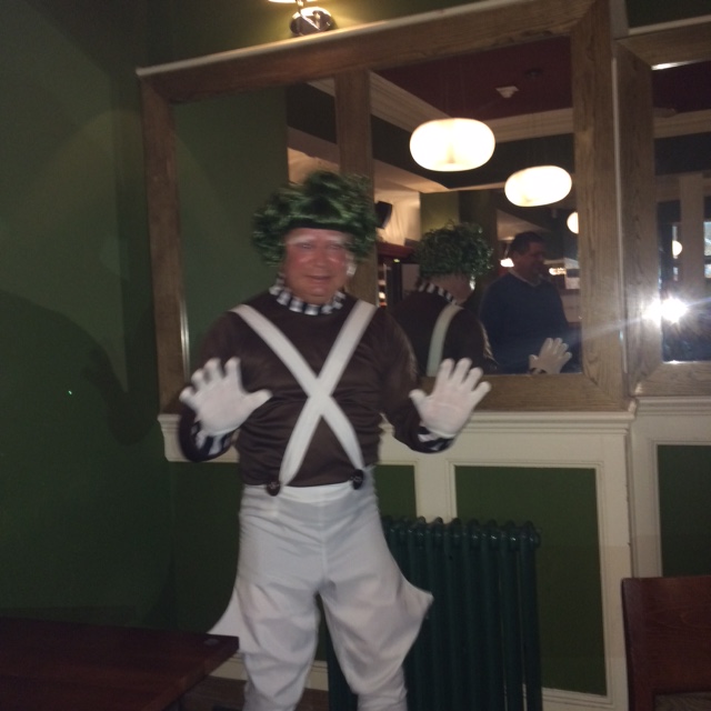 Phil arranged to meet in Edmunds and had a reserved area for the chap get together. A number of us were already there when the birthday boy turned up in his latest costume, an oompa loompa!!. It all looked a bit tight to be honest and Phil had to leave his wallet behind the bar to avoid getting any 'visible' bulges he did not want on show. Notable exceptions were Dave (preparing for Wainwright 214) and Simbers also as it turns out preparing for Wainwright 214 whist skiing in Europe.